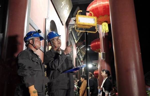 4月6日1时,在大足石刻宝顶山景区,随着国家级非物质文化遗产代表性项目“宝顶架香庙会”活动圆满结束,标志着国网重庆大足供电公司顺利完成2026年大足石刻国际旅游文化节重要活动保电任务。